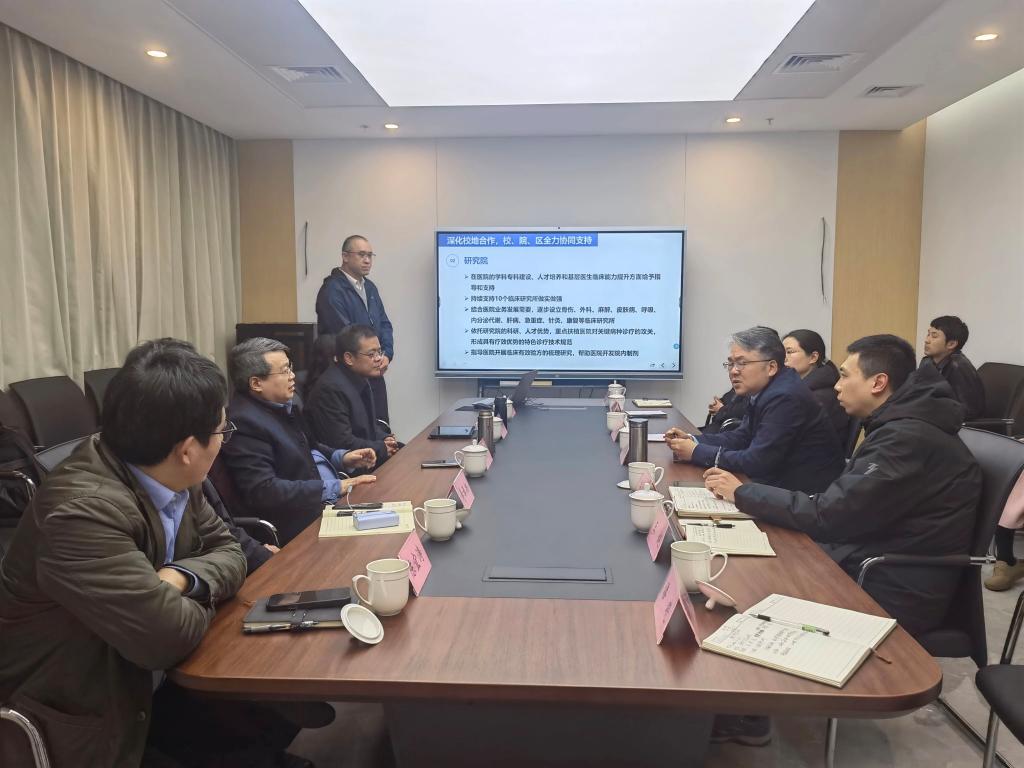 最后,温成平副校长还赴附属金东中医院开展调研慰问,与金东区委常委、区政府党组成员吴晓辉及区卫健局进行座谈,共同谋划医院发展思路与重点举措,着力推动校地协同、医教融合走深走实。